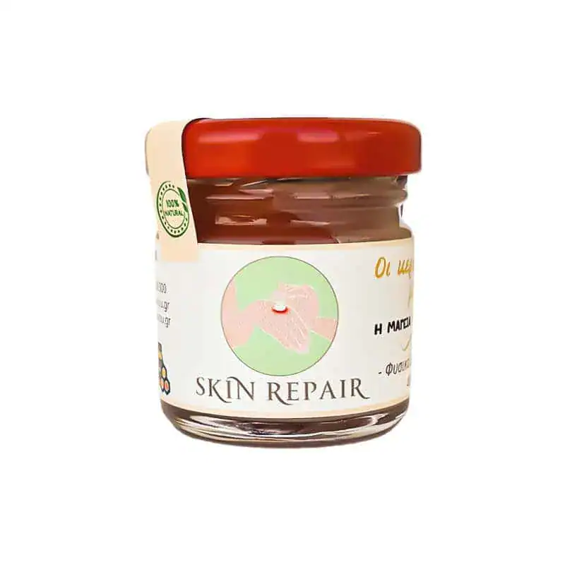 Το κερί μέλισσας είναι γνωστό για τις αντιβακτηριδιακές και επουλωτικές του ιδιότητες. Δημιουργεί ένα φυσικό προστατευτικό φιλμ που αποτρέπει την απώλεια υγρασίας, προστατεύοντας το δέρμα από μικροοργανισμούς και μολύνσεις. Παράλληλα, συμβάλλει στην ανάπλαση των κυττάρων και την επούλωση τραυμάτων, κάνοντάς το ιδανικό για την αποκατάσταση της επιδερμίδας.